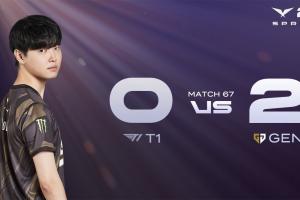 【30:54】GEN推掉三路高地,门牙塔下发呆的Oner波比被Lehends烈娜塔Q到接大招瞬间白给!随后Canyon芮尔吸两个配合队友再秒Zeus小炮!T1守不住了!GEN轻松赢下T1,完成对T1的常规赛横扫!