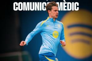官方:德容右大腿远端股二头肌受伤,康复周期预计为5至6周