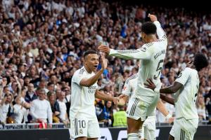 5分领跑!皇马2-1巴萨终结国家德比4连败 贝林传射两队赛后冲突